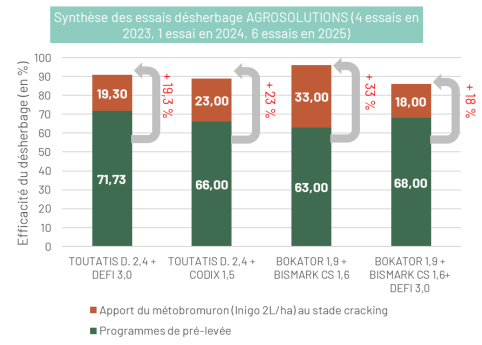 En l’absence de passage au stade cracking, les essais INOXATECH 2025 montrent qu’un mélange intégrant 4 matières actives devient nécessaire pour maintenir un niveau d’efficacité satisfaisant.